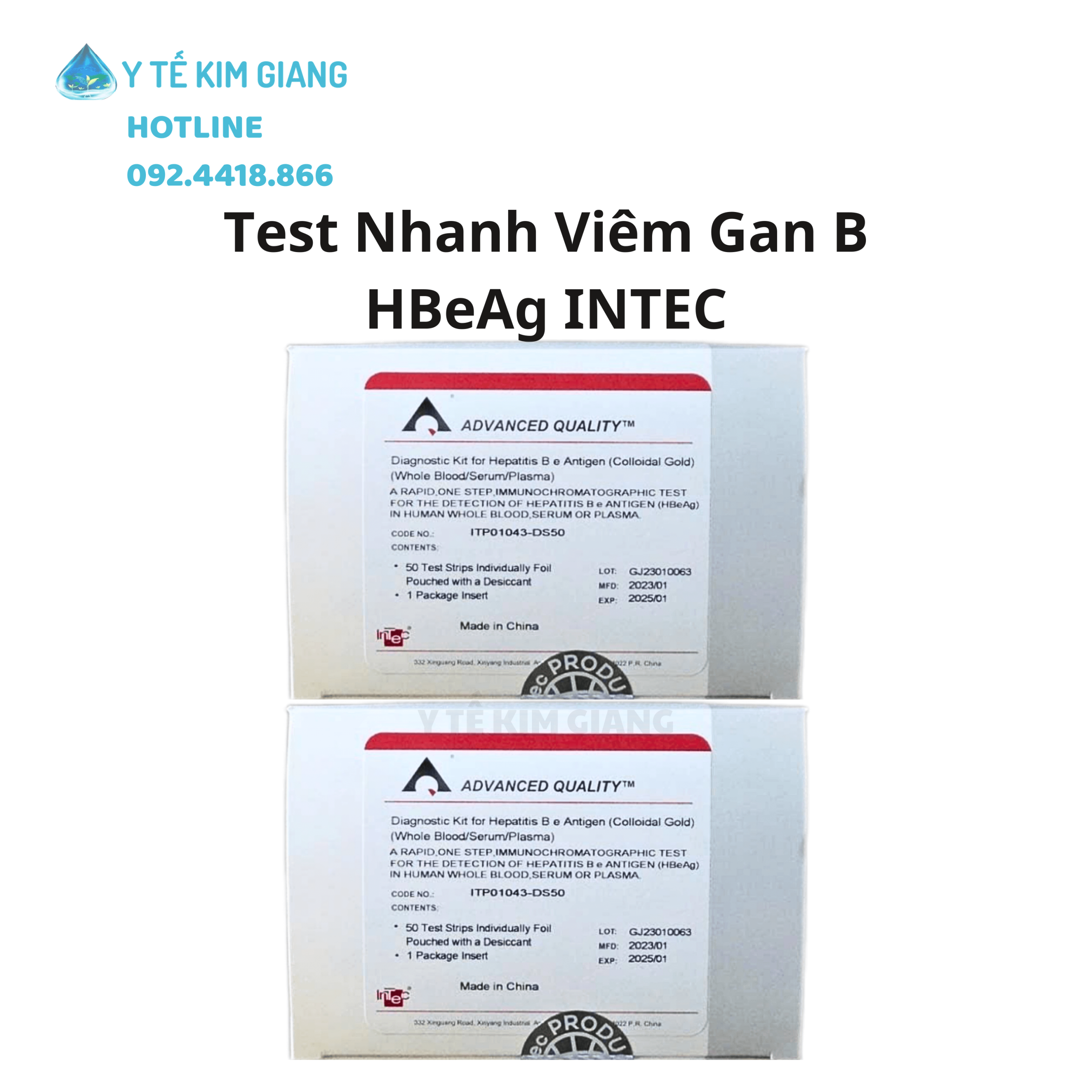 Que thử viêm gan HBeAg INTEC giúp phát hiện kháng nguyên HBeAg với độ đặc hiệu 99.4%. Test nhanh 15 phút, đạt ISO 13485, 50 test/hộp, bảo quản nhiệt độ thường.