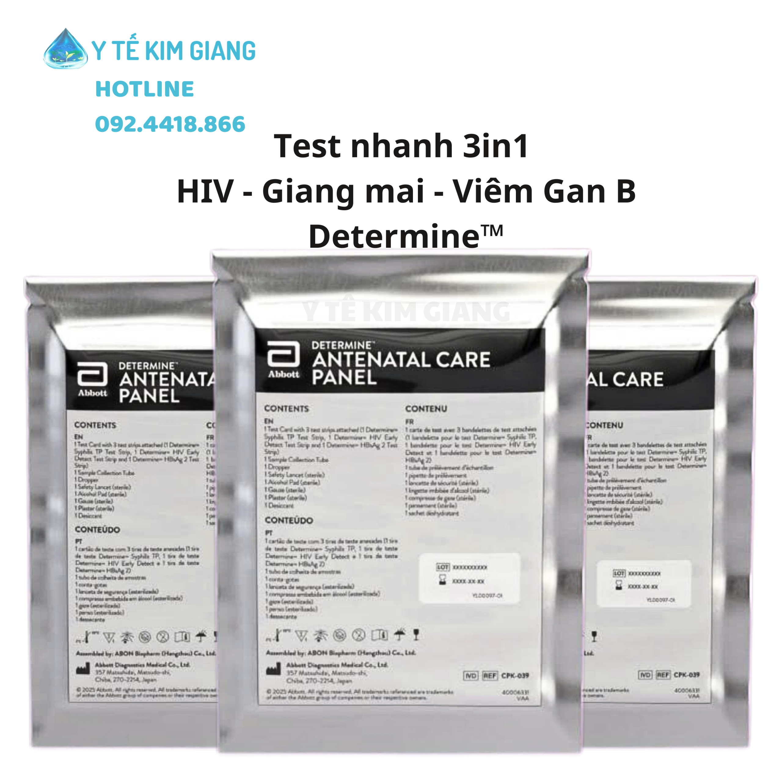 Trong chăm sóc tiền sản, việc phát hiện sớm các bệnh truyền nhiễm có nguy cơ lây từ mẹ sang con đóng vai trò vô cùng quan trọng. Test nhanh HIV, giang mai, viêm gan B Determine™ Antenatal Care Panel là giải pháp xét nghiệm hiện đại, cho phép sàng lọc đồng thời 3 bệnh chỉ trong một lần lấy mẫu, giúp tiết kiệm thời gian và nâng cao hiệu quả chăm sóc thai phụ.